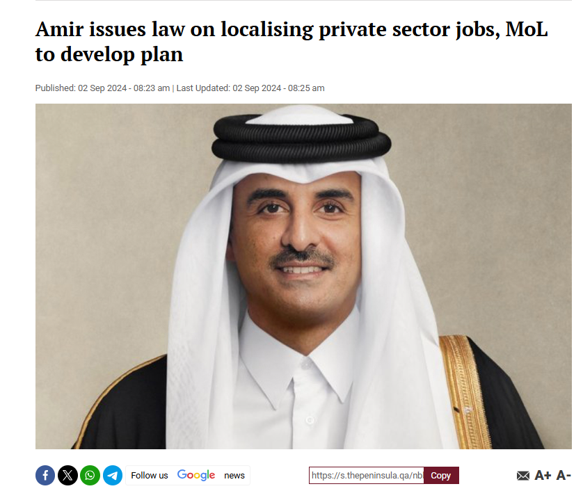 <카타리제이션 (Qatarization) 민간부문 확대 발표 기사>